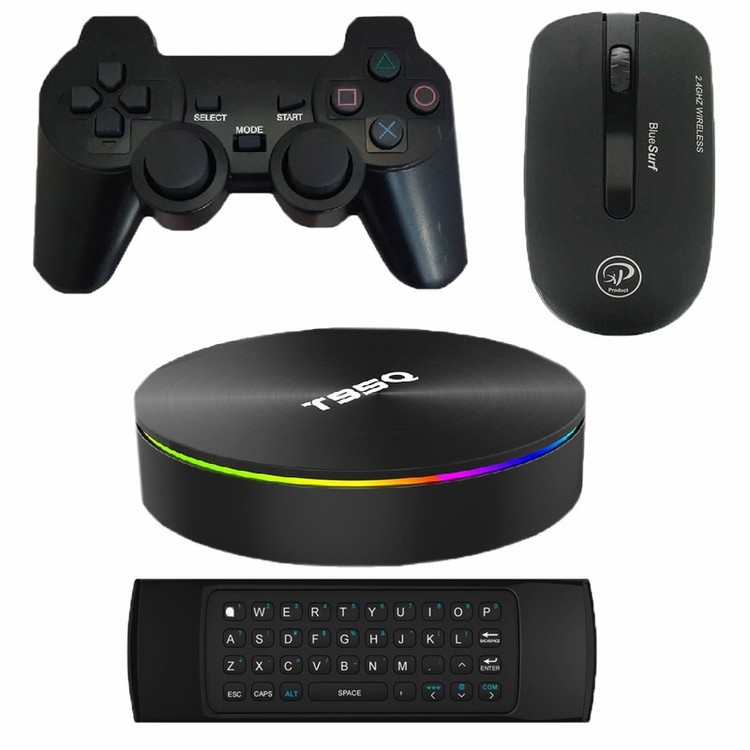 گیم باکس agbox-pro-03-c مشتمل بر یک اندروید باکس با حافظه داخلی 64 گیگ و رم 4 گیگ، یک دسته بازی بی سیم، یک ماوس بیسیم و یک ریموت ایر ماوس کیبورد دار است. سیستم از پردازنده قدرتمند s905X2 استفاده میکند که از بهترین پردازنده های میان رده اندروید باکس است. سه مجموعه بازی کامل و متنوع که مجموعا بیش از 50 بازی از پرطرفدارترین بازی های گوگل پلی مشتمل بر بازی های ورزشی مانند فوتبال در انواع سبک، بسکتبال وتنیس، مسابقات ماشین سواری در انواع سبک، بازی های تیراندازی (FPS) در انواع سبک، مبارزات شخصی، پلتفرم، انواع سبک بازی جهان باز و فکری و ... می باشد بر روی سیستم نصب است. تمامی بازی ها، با گرافیک بسیار خوب و اکثرا سه بعدی و از بازیهای مشترک اندروید، کنسولها و کامپیوتر هستند. برای هر سبک از بهترین بازیهای دیتا دار اندروید در آن سبک استفاده شده است که اکثرا افلاین هستند. همچنین مجموعه بازی های دیگر نیز برای سیستم در نظر گرفته شده که شما میتوانید به صورت جداگانه سفارش دهید و یا مانند کلیه محصولات سری agbox، بازی و نرم افزار دلخواه را از گوگل پلی، بازار و .. نصب کنید. علاوه بر بازیهای اندروید، شبیه ساز کنسول نوستالژیک سوپر نینتندو و مجموعه ای از بهترین بازی های آنها مانند سوپر ماریو، سونیک، مورتال کامبت و ... بر روی سیستم نصب است. مزیت پلتفرم اندروید نسبت به بقیه پلتفرم ها، تنوع بسیار بالای بازی ها است. به غیر از چند بازی محدود که با ماوس قابل انجام هستند، تمامی بازیها با دسته بازی قابل بازی هستند. راهنمای جامع سیستم و نحوه اجرای بازیها جهت اجرای روان با دسته را در کاتالوگ سیستم می توان یافت. در بازیها، منوهای انتخاب مراحل و تنظیمات اولیه با ماوس انجام شده و دسته بازی داخل محیط بازی فعال می گردد. همچنین پشتیبانی انلاین محصولات agbox می تواند راهنمای شما در نصب برنامه ها و استفاده شما از سیستم باشد. دستگاه دارای قابلیت اضافه کردن مموری جانبی و خروجی اپتیکال صدا نیز می باشد. دستگاه از طریق کابل HDMI به تلویزیون یا هر نمایشگر دیگر متصل می شود و با اتصال ماوس، دسته بیسیم یا کیبورد ایر ماوس از طریق دانگل های مربوط به پورتهای USB سیستم می توان بازیها و برنامه هایی که در حافظه نصب هستند را اجرا نمود و همچنین از سیستم برای وبگردی وتماشای فیلم انلاین و افلاین بهره برد.