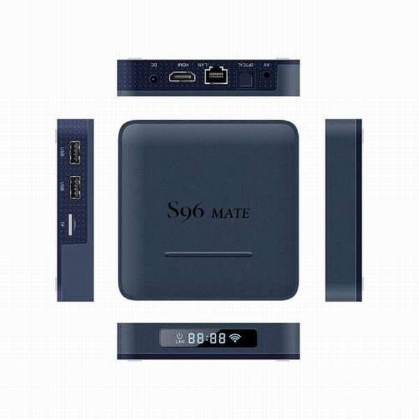 اندروید باکس وسیله ای جهت هوشمند کردن تلویزیون می باشد. اندروید باکس مانند یک موبایل اندروید بدون صفحه نمایش است که از طریق کابل HDMI به صفحه تلویزیون و مانیتور متصل می شود و توسط کنترلر اندروید باکس می توان ایکون ها را انتخاب و نرم افزار ها را اجرا نمود. میتوان از ماوس بیسیم نیز برای این کار استفاده کرد. قابلیت اتصال به اینترنت از طرق wifi و LAN در اندروید باکس ها فراهم است و می توان از انها برای وبگردی و اجرای فیلم انلاین و افلاین استفاده نمود. اندروید باکس مدل S96 MATE، از پردازنده جدید و قدرتمند چهار هسته ای s905w2 با حداکثر فرکانس 1.8 گیگاهرتز ,و پردازنده گرافیکی MALI-G31 MP2 استفاده می کند و دارای رم 4 گیگابایت و حافظه داخلی 32 گیگابایت می باشد. دستگاه از اندروید نسخه 11 استفاده می کند. امکان نصب نرم افزار اندروید روی دستگاه فراهم است و می توان نرم افزار دلخواه و مناسب توسط گوگل پلی، بازار، مایکت و .. نصب نمود. همچنین می توان از گوگل کروم نیز جهت دانلود و نصب نرم افزار یا پخش فیلم انلاین استفاده کرد. دستگاه خروجی اپتیکال صدا و قابلیت اضافه کردن کارت حافظه دارد. همچنین دستگاه دارای دو پورت USB می باشد.