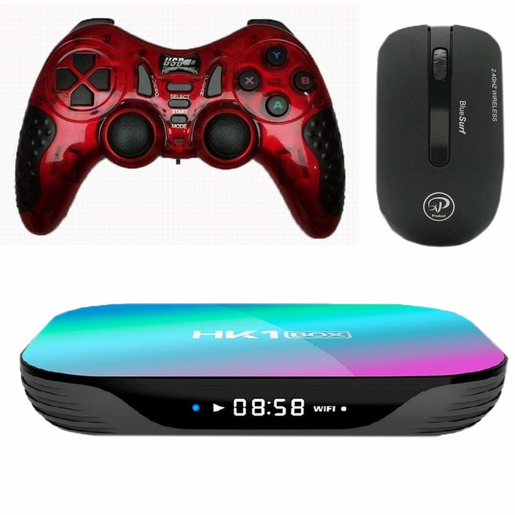 گیم باکس agbox-pro-02-c مشتمل بر یک اندروید باکس HK1box با حافظه داخلی 64 گیگ و رم 4 گیگ، یک دسته بازی بی سیم فانتزی و یک ماوس بیسیم است. سیستم از پردازنده قدرتمند s905X3 استفاده میکند که از بهترین پردازنده های میان رده اندروید باکس است و از پخش فیلم تا رزولوشن 8k پشتیبانی میکند. چهار مجموعه بازی کامل و متنوع که مجموعا بیش از 60 بازی از پرطرفدارترین بازی های گوگل پلی مشتمل بر بازی های ورزشی مانند فوتبال در انواع سبک، بسکتبال وتنیس، مسابقات ماشین سواری در انواع سبک، بازی های تیراندازی (FPS) در انواع سبک، مبارزات شخصی، پلتفرم، انواع سبک جهان باز و فکری و ... می باشد بر روی سیستم نصب است. برای هر سبک از بازیهای دیتا دار اندروید در آن سبک استفاده شده است که اکثرا افلاین هستند. همچنین مجموعه بازی های دیگر نیز برای سیستم در نظر گرفته شده که شما میتوانید به صورت جداگانه سفارش دهید و یا مانند کلیه محصولات سری agbox، بازی و نرم افزار دلخواه را از سایت محصول، گوگل پلی، بازار و .. نصب کنید. علاوه بر بازیهای اندروید، شبیه ساز کنسول نوستالژیک سوپر نینتندو مجموعه ای از بهترین بازی های آن مانند سوپر ماریو، ماریوکارت، سونیک، مورتال کامبت و ... بر روی سیستم نصب است. به غیر از چند بازی محدود که با ماوس قابل انجام هستند، تمامی بازیها با دسته قابل بازی هستند. راهنمای جامع سیستم و نحوه اجرای بازیها از طریق میانبر مربوطه جهت اجرای روان با دسته را در کاتالوگ سیستم می توان یافت. در بازیها، منوهای انتخاب مراحل و تنظیمات اولیه با ماوس انجام شده و دسته بازی داخل محیط بازی فعال می گردد. با سرچ کلمه agbox در دیجی کالا می توانید بر اساس نیاز خود گیم باکس مد نظر را انتخاب کنید. همچنین پشتیبانی انلاین محصولات agbox می تواند راهنمای شما در نصب برنامه ها و استفاده شما از سیستم باشد. دستگاه دارای قابلیت اضافه کردن مموری جانبی و خروجی اپتیکال صدا نیز می باشد. دستگاه از طریق کابل HDMI به تلویزیون متصل می شود و با اتصال ماوس و دسته بیسیم از طریق دانگل های مربوطه به پورتهای USB سیستم می توان بازیها و برنامه هایی که نصب هستند را اجرا نمود و از سیستم برای وبگردی وتماشای فیلم انلاین از طریق LAN و wifi و همچنین فیلم افلاین بهره برد.