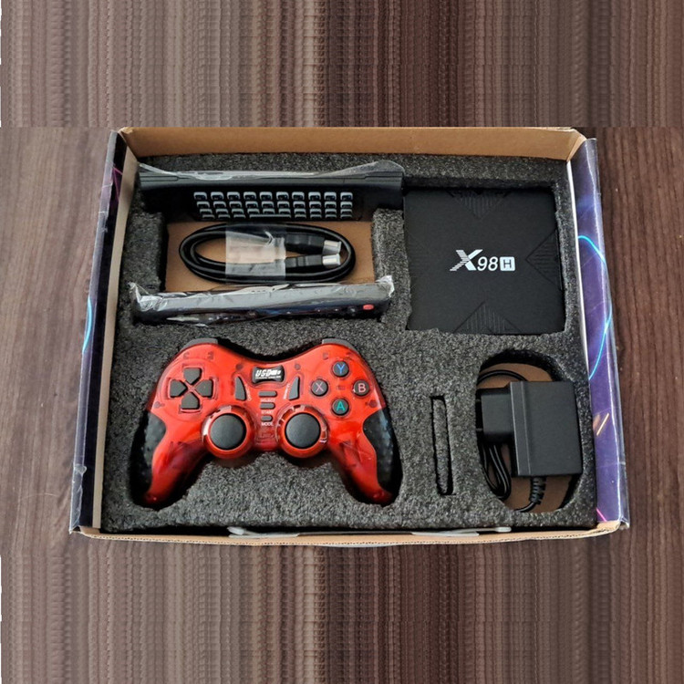اندروید باکس X98H از سری جدید مجموعه x96mini.com است و با پردازنده قدرتمند H618 با رم 4 گیگ و حافظه داخلی 32 گیگ استفاده می کند. این پردازنده از تکنولوژی wifi6 پشتیبانی می کند و با اندروید نسخه 12 عرضه شده است. اندروید باکس مانند یک موبایل بدون صفحه نمایش است که از طریق پورت HDMI به تلویزیون شما متصل شده و می تواند برای هوشمند کردن تلویزیون شما، وبگردی، تماشای فیلم انلاین و افلاین استفاده شود. به این منظور همراه با این اندروید باکس یک دسته بازی بیسیم و یک ایر کیبورد-ماوس در بسته بندی وجود دارد تا بتوانید از همه قابلیت های اندروید باکس بهره ببرید. ایر ماوس و دسته بازی بیسیم می توانند از طریق دانگل هایشان که به پورت های USB دستگاه متصل می شوند با دستگاه ارتباط برقرار کنند. ایر ماوس این دستگاه هم یک کیبورد کامل و یک ایرماوس است که وبگردی توسط دستگاه را راحتتر می کند. همچنین برخی بازیهای اندروید با دسته بازی سازگار بوده و می توانید از انها به همراه دستگاه استفاده کنید. برای سهولت استفاده، همراه این دستگاه نرم افزارهای تماشای فیلم و همچنین 50 بازی اندروید سازگار با دسته بازی و یا ایرماوس روی دستگاه نصب است. نرم افزار وبازی بیشتر را می توانید از سایت محصول دانلود کنید. خدمات پس از فروش سیستم هم می تواند راهنمای شما در استفاده از تمامی امکانات سیستم باشد. ضمنا شبیه ساز کنسولهای قدیمی هم به همراه تعداد زیادی از بازیهای انها نصب است که می توانید خاطرات بازیهای قدیمی را زنده کنید. می توانید دسته بازی دیگر سازگار با اندروید باکس هم جهت بازی کردن به صورت دو نفره از دیجی کالا تهیه کنید. دستگاه دارای سه پورت USB، پورت HDMI، پورت LAN و قابلیت اتصال به اینترنت از طریق wifi است. برای دیدن فیلم انلاین اتصال به اینترنت از طریق LAN توصیه می شود و یا دستگاه را در دید مستقیم مودم بیسیم قرار دهید. این محصول دارای خدمات پس از فروش agbox است.
